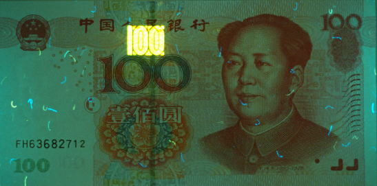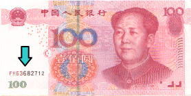 人民元の紙幣番号は磁性インクで印刷されている。 |