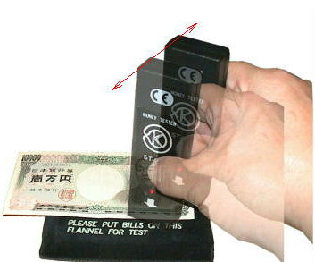 | 真正券の記番号の印刷には微弱な磁性インクが使用されている。画像的な差異はないが、磁気センサーに反応するため、鑑定装置などはこのポイントを鑑定要素に採り入れている例が多い。当該人民元はこの紙幣記番号以外はすべて非磁性インクで印刷されている。 |