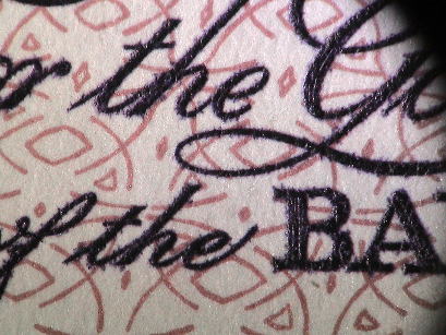 | 文字の輪郭部分にはインクがはみ出すように固着している。凸版印刷特有の現象マージナルゾーンだ。 |