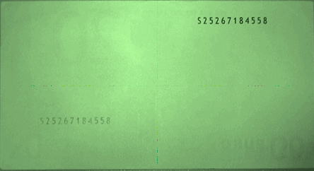 真正券では、一部に赤外線インクが使用されており、特定波長の赤外線をあてると画像が消えたように見える。ただし、視認はTVモニターを介する必要がある。 |