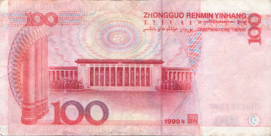 紙幣の偽造対策としてよく用いられる微細集合線は人民元にも施されている。