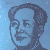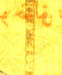 真正券のすかしは抄造工程中、紙に凹凸をつけ、厚みが変わることで透過画像に濃淡(明暗)がつき、肖像画などのモノトーン画像を表すことができるわけである。肖像画すかしのほお、髪などにその特徴であるグラデーション(階調=濃淡が徐々に変化)が見受けられる。 |