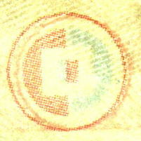一方、偽造券では用紙とほぼ同色のインクで印刷によって再現されている。そのため真正券のすかしのような立体感が見られない。真正券が、いわば奥行き(紙の凹凸)をもった3次元の加工で表されているのに対し、偽造券では用紙の平面に印刷した2次元的な画像にすぎない。 |