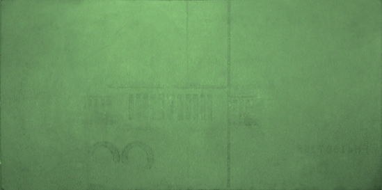 用紙が青白く発光する点、すかしが浮かび上がる点は表面の場合と同じである。 |