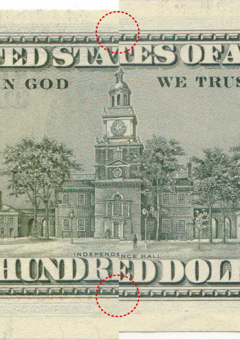 はじめに 昨年7月、極めて精度の高い偽造米ドル「CB券」(SERIES2001年の高精度偽造米100ドルスーパーXの1種、記番号がCB〜で始まる例が多い)が国内外において大量に出回り、従来の鑑定機を容易に通過するため、金融機関をはじめ外貨両替の窓口においてその対応に苦慮されたことは記憶にあたらしい。ところが、今年6月には、その進化版と言える超高精度偽造券「スーパーX−Dバージョン」(SERIES2003年の高精度偽造米100ドルスーパーX、区別の意味で当研究所が仮に命名)が出現した。スーパーX−Dバージョンは、現在のところCB券のような1種大量の流通ではなく、複数種類の記番号が流通していると見られている。 偽造券としての特徴は基本的にはCB券(及び一連のスーパーX)と同じであったため、いわゆる記番号等の象徴的な部分のみを刷新した衣替えバージョンと見られていた。しかしながら、これまでCB券では再現されていなかった裏面の赤外線インクによる印刷も今回の「スーパーX−Dバージョン」ではみごとに再現されており、その意味では明らかに「スーパーX」のアップグレイド版と言わざるをえない出来映えとなっている。 なお、スーパーXの進化(偽造券における改訂)は記番号のみ変わったのではなく、財務長官のサインもSERIES2001年のポール・オニールからSERIES2003年のジョン・スノーにかわっており、この辺のデティールな印刷についても当然のごとく「スーパーX」にはミスがない点を申し添えたい。 スーパーXはそのほとんどが発見されず、本物として流通していると言われている超高精度の偽造券である。B級以下の一般偽造券に見られるような一目瞭然とした差異がないため、本稿においても見破り方マニュアルとしては、かなり微妙な差異を指摘せざるを得ない。そこで部位の拡大視認にはなるべく鑑定用無収差ルーペの使用をおすすめする次第である。それから、本稿で紹介する真正券の差異については、偽造券のサンプル数が少ないため、同じスーパーX−Dバージョンでも個体差が存在する可能性を申し添えたいと思う。 さらに、毎々のお断りになるが、目視による鑑定では、当該偽造券とは異なる種類の偽造券が世の中には多数存在しているであろうことをいつも念頭においてに鑑定にあたる必要があり、本稿に掲載されている情報はあくまで一部の偽造券に関する情報である。 高精度偽造券スーパーXについてはその初期版(SERIES1996バージョン)は99年に国内に初上陸し、現在までに4種(と見られている)ほどの個体が発見されており、偽造団においては修正改良を繰り返し、その品質は逐次向上しているのが実態である。そして今回のスーパーX−Dバージョン(SERIES2003年100$偽造)出現の背景には、CB券等のSERIES2001年バージョンが一般に用心され、いわば流通力が弱まった現象に対し、通用力の強化をはかったと言えよう。 加えて、当研究所としては、来るべき2007年の100ドル紙幣のカラー改訂を目前に、現有設備が有効なうちに駆け込み増産体制に入ったのではないか、との見方を強めている。