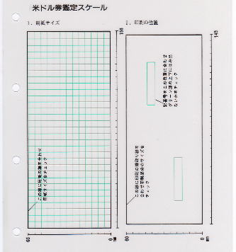 本スケールは「偽造通貨鑑定マニュアル」の付属品です。縦方向、横方向を同時に計るのに大変便利です。