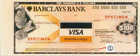 米ドル旅行小切手の多くはMICR(MAGNETIC INK CHARACTER RECOGNITION)部分@にE13B方式を採用している。