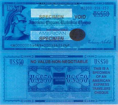 | A)「AMERICANEXPRESS」旅行米ドル小切手表面の普通写真 |