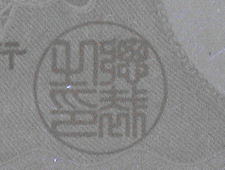ところが、当該偽造券ではそのような特徴は見受けられない。その意味で偽造としては紙質を吟味して使用した可能性が考えられる。 |
