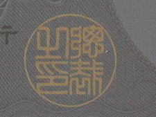 真正券では赤い印影が橙(または黄)色に蛍光発色する。偽造券では蛍光インクが使用されていないため変色することはない。