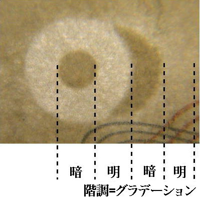 偽造券にはグラデーションは見られない。